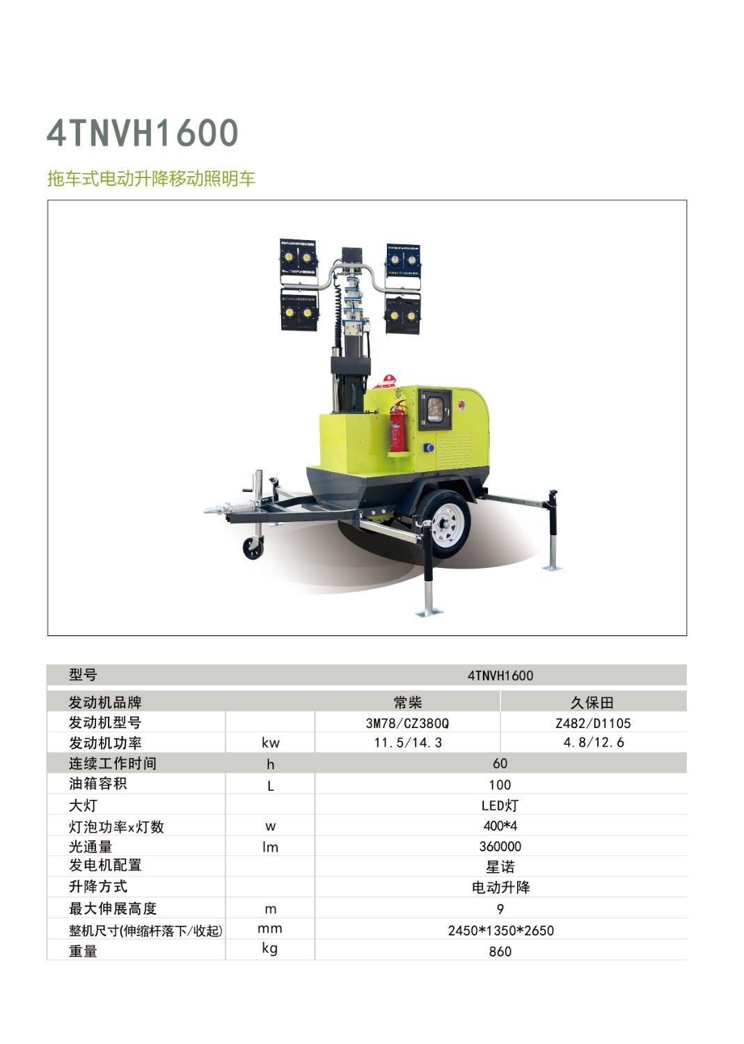 拖車式電動升降照明車4TNVH1600圖片展示: